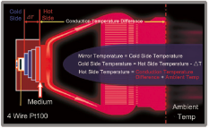 KGT-DP 采用四級(jí)增強(qiáng)型帕爾貼冷泵,理論溫差為107℃,制冷強(qiáng)勁,使高溫環(huán)境下測(cè)量更低露點(diǎn)成為可能。熱管散熱的熱傳導(dǎo)效率比普通的純銅高數(shù)十倍,甚至上百倍; 而柔性導(dǎo)熱材料使冷泵基體與散熱器緊密無縫連接,其導(dǎo)熱系數(shù)是普通導(dǎo)熱膏的近30倍。