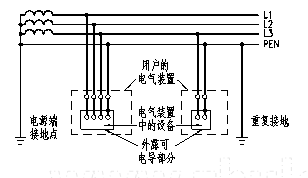 -PEN線產生電壓降,外露導電部分對地有電壓;