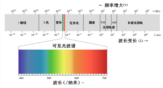 電磁波波譜,從左到右,波長逐漸變長,光子的能量逐漸減小。